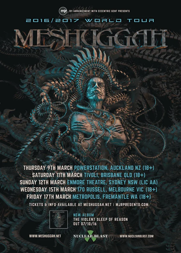 The Swedish Metal Juggernaut that is Meshuggah have announced that they are to grace Australian and New Zealand's shores in 2017, on the back of their 8th studio Album. 'The Violent Sleep of Reason' will be released through Nuclear Blast records and takes the band back to their heavy, technical roots.