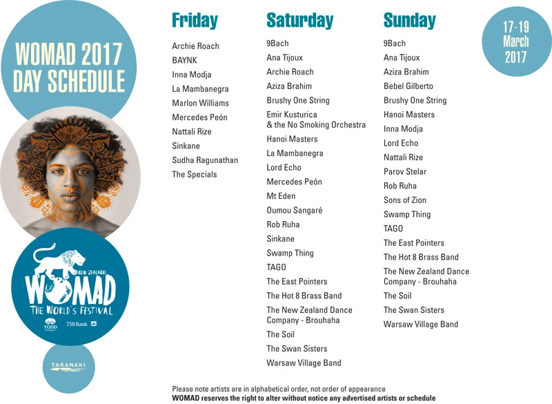 WOMAD 2017 sees the festival celebrate its 13th anniversary in the stunning 55-acre Brooklands Park and TSB Bowl of Brooklands, New Plymouth. Over the years, WOMAD NZ, has rightfully gained a reputation as one of the most beautiful outdoor festivals in the world.