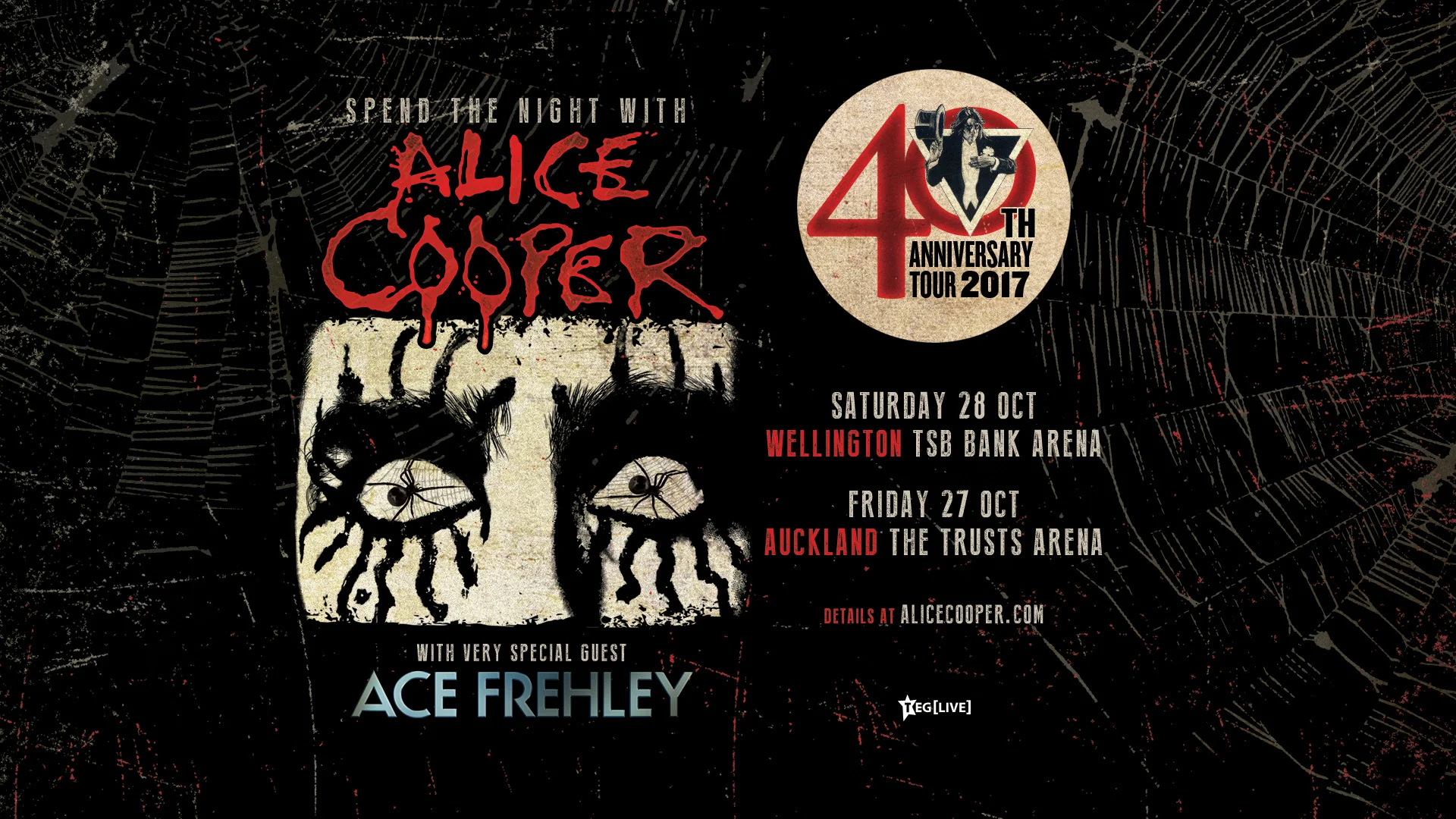 Fans will be delighted to hear that Alice Cooper will return to NZ & Australian shores this October for the World Tour. In what is sure to be rock event of the year, Alice will be joined by the original KISS “Spaceman” Ace Frehley, as Very Special Guest. The pairing of Alice and Ace brings together these highly respected icons of rock and roll!