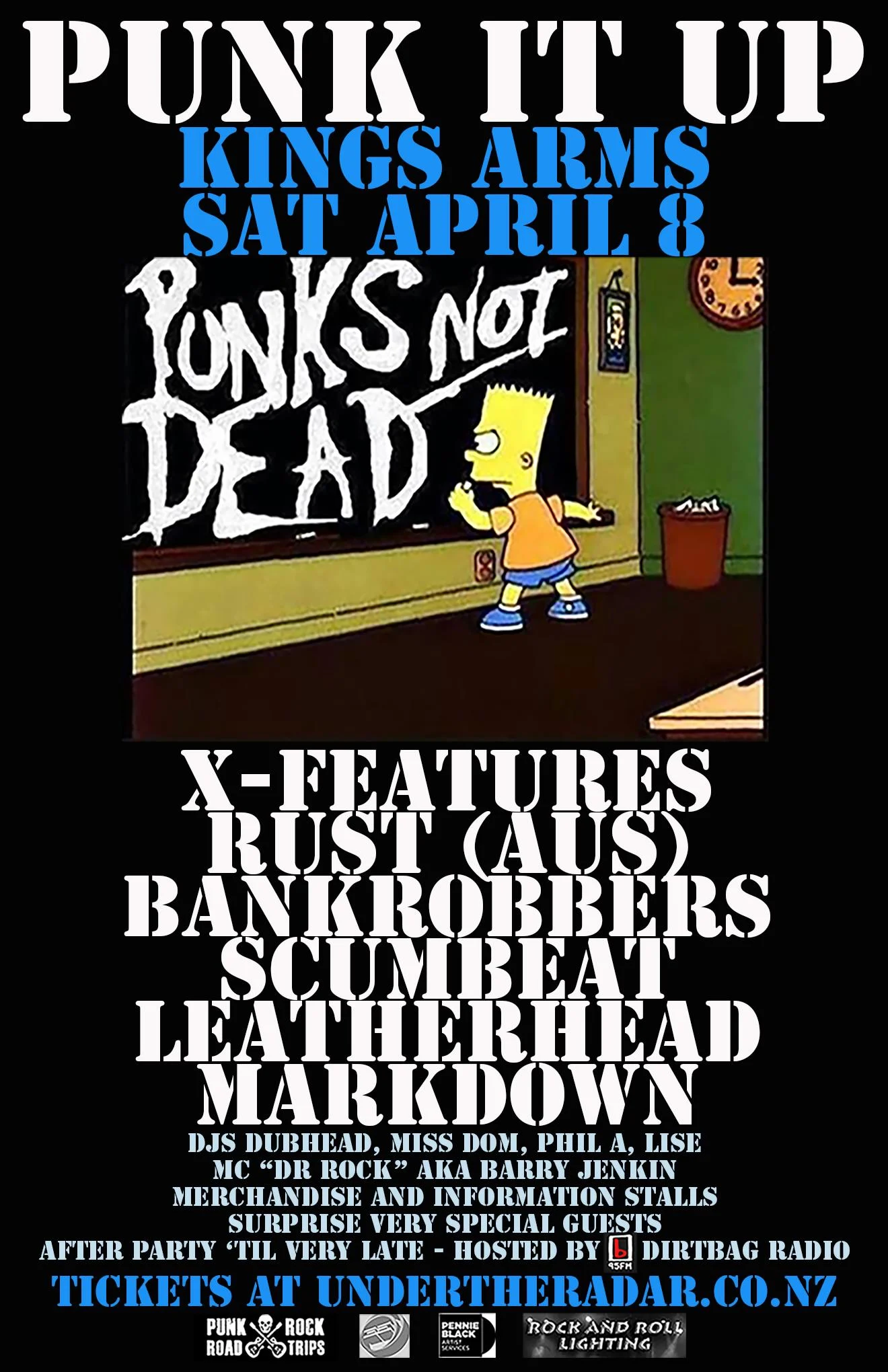 Hailing from Waiheke (home of Punk It Up’s MC for the evening Barry Jenkins aka Dr. Rock), Leatherhead are excited to join PUNK IT UP - including X-Features, RUST, Scumbeat, and Markdown, with the action in the main room made complete by bankRobbers (along with some very special secret guests).