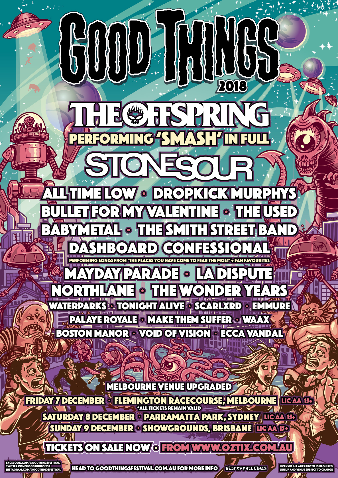 The Offspring | Stone Sour | All Time Low | Dropkick Murphys | Bullet For My Valentine | The Used | BABYMETAL | The Smith Street Band | Dashboard Confessional | Mayday Parade | La Dispute | Northlane | The Wonder Years | Waterparks Tonight Alive | Scarlxrd | Emmure | Palaye Royale | Make Them Suffer | Waax | Boston Manor | Void Of Vision | Ecca Vandal