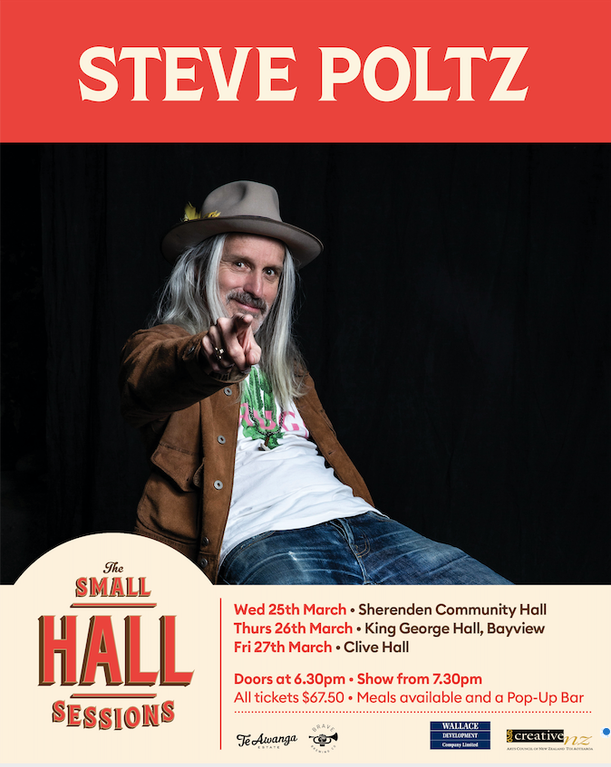 Date of Event: Thursday 26th March 2026The latest iteration of the famed Small Hall Sessions brings renowned American troubadour Steve Poltz to the tiny venues of Te-Matau-a-Māui. From sold-out shows across Australia, to an intensely intimate gathering in the seaside community of Bay View, this is a man who’s seen it all!