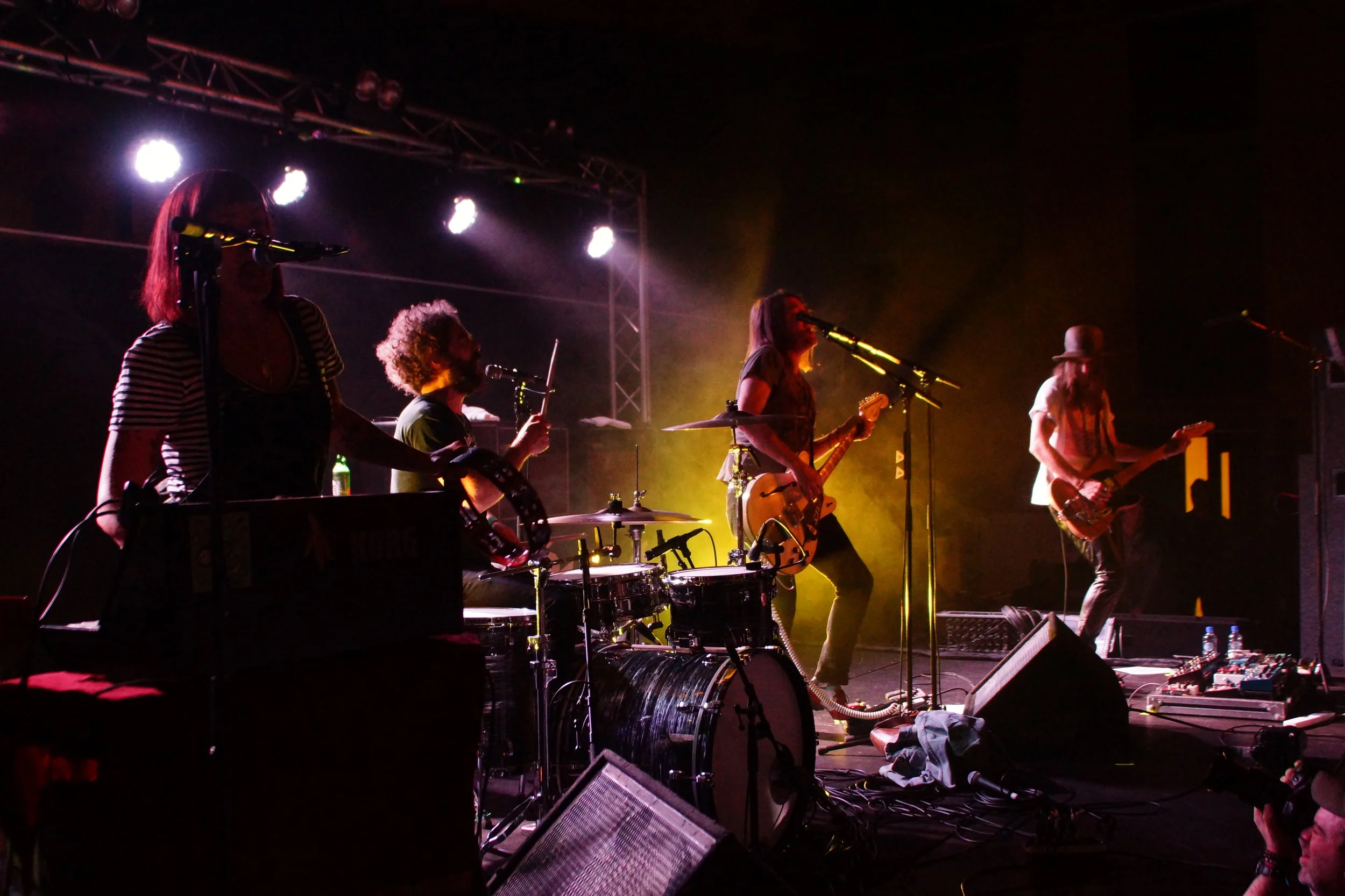 A short intermission while the stage is cleared and final preparations are made for The Dandy Walhols. The background music fades out and the lights dim to a blue colour and then there's a "Hello Christchurch" as the Dandy Warhols present themselves on stage to a big cheer, and start playing Muhammad; the first of 15 songs of their set list from a discography of 6 outta 10 albums.
