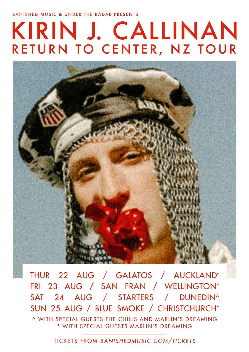 Wild and wondrous Australian treasure, Kirin J Callinan announces a four-date New Zealand tour this August to celebrate the release of his triumphant new record Return To Sender. Joined on the road by Dunedin's psychedelic pop quartet Marlin's Dreaming, Callinan returns to Aotearoa to take on both of its major islands. The Dunedin lineup also features very special guests, iconic pop group The Chills.