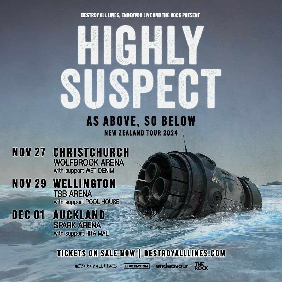 Highly Suspect have today announced their support acts for all three New Zealand shows, starting on November 27th in Christchurch before hitting Wellington and Auckland.