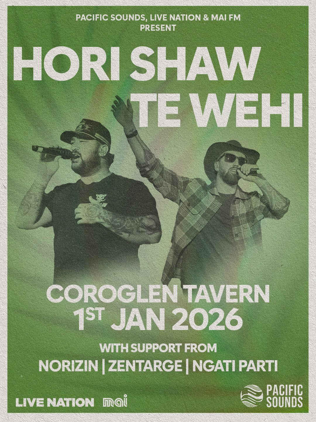 Don’t miss Hori Shaw and Te Wehi with Norizon, ZENTARGE and Ngati Parti at Coroglen on New Year’s Day 2026.