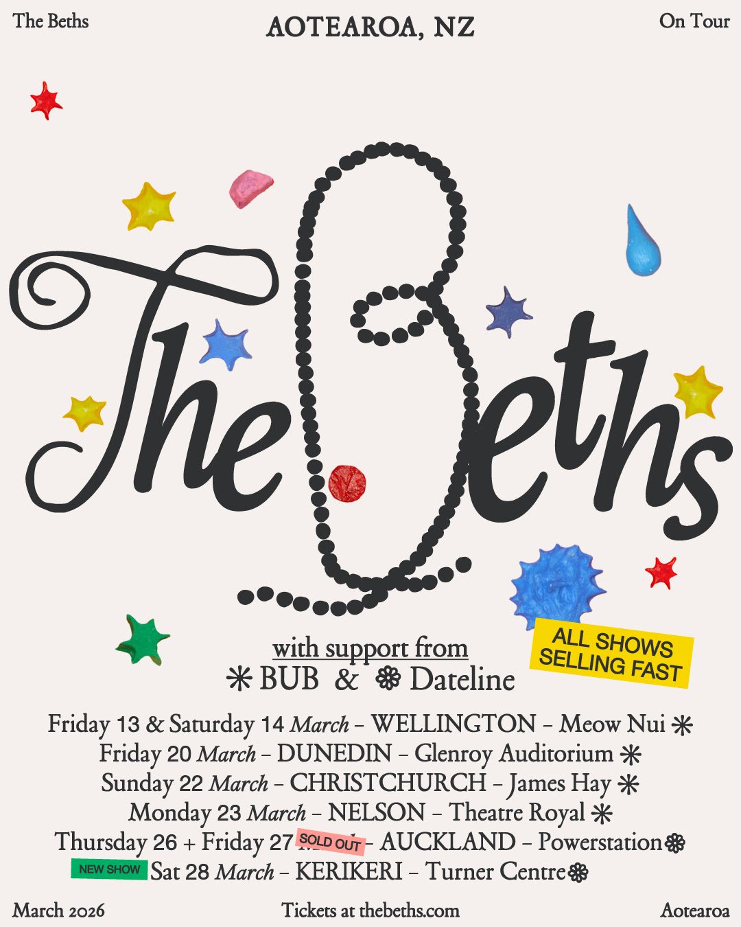 THE BETHS STRAIGHT LINE WAS A LIE AOTEAROA TOUR MARCH 2026 With special guests Bub* and Dateline^