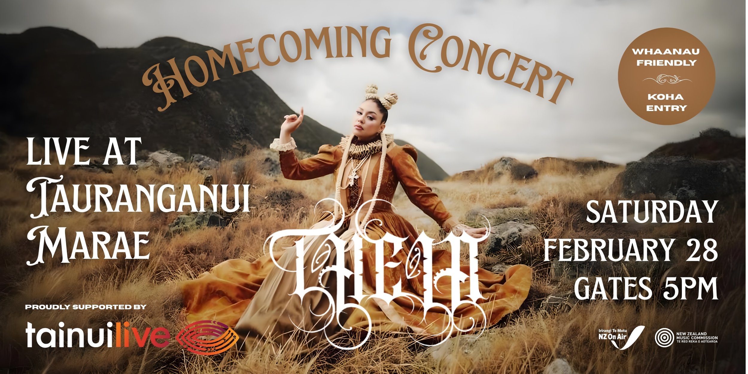 Hosted at Tauranganui Marae on the banks of the Waikato River, and proudly supported by Tainui Live, this show is the centrepiece of Theia’s upcoming nationwide Debut Album Release Tour. Gates will open at 5pm and entry to the whaanau friendly, all-ages event will be by koha.